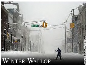 (Feb. 18, 2003) -- The Northeast began digging out of snowdrifts several feet high Tuesday following a crippling President's Day blizzard that will go down in some areas as one of the worst storms in decades. With snowfall tapering off early Tuesday, snowplows scrambled to clear roads in anticipation of a difficult commute for millions of people in the eastern United States. ``It's no man's land out there,'' said Paul McIntyre, state highway supervisor for Maryland's Garrett County, which received 49 inches of snow. ``It looks more like Siberia than Maryland.'' The storm left a devastating toll across the East. At least 28 deaths had been blamed on the storm system since it charged out of the Plains during the weekend, and more than 250,000 homes and businesses were without power. Snowdrifts were piled high from the Ohio Valley to New England, mudslides and floods wreaked havoc in the southern Appalachians, and layers of ice snapped trees and power lines. ``It's by far the worst ice storm that we've had in decades. It's a nightmare down here,'' said Kimberly Carver, director of the Scioto County Emergency Management Agency in Ohio. ``It's just crippled us.'' For the region as a whole, it was the worst snowstorm since the blizzard of 1996, when at least 80 deaths were blamed on the weather. By early Tuesday, Washington Dulles International Airport received 24.2 inches, New York City recorded 19.8 inches of snow and Boston's Logan International Airport had 27.5 inches - the largest accumulation since snow records started being kept in 1892 with a few more inches on the way. Elsewhere, 37 inches fell in West Virginia's Berkeley County, the National Weather Service said. The Seven Springs ski resort area in western Pennsylvania had 40 inches. Berkeley Springs, W.Va., asked the state to send in the National Guard to help residents dig themselves out. Mayor Susan Webster said Berkeley Springs needs ``heavy equipment ... and manpower.'' ``Our concern is not only moving the snow as quickly as possible for the welfare of our citizens, but the real fear of flooding that a melt of this magnitude will bring,'' Webster said. Airports serving Washington, Baltimore, Philadelphia and New York were largely shut down on Monday, stranding thousands of passengers trying to leave and get into the region. Some flights resumed Tuesday morning. At Philadelphia International Airport, departing flights started going out around 6 a.m. But even so, airport spokesman Mark Pesce said 35 percent of Tuesday flights are canceled. He expected operations to be normal Wednesday. Among the many travelers stranded by the storm, few were as far from home as Lynn Anderson of Belfast, Northern Ireland. ``It's turned into a complete nightmare,'' said Anderson, who arrived in Philadelphia on Sunday hoping to go to Williamsburg, Va., but had to stay overnight in a downtown Philadelphia hotel. Road crews were doing all they could to create smooth Tuesday commutes following the long holiday weekend. Mayor Michael Bloomberg urged commuters to ``chill out'' and not get frustrated. ``It's going to be a rough commute, but everybody will get there.'' Bloomberg estimated the storm had cost his city around $20 million - about $1 million per inch of snow. Maryland Gov. Robert Ehrlich said the storm had cost between $20 million and $30 million - and the state was already $14 million over budget for road cleanup this season. Plows built piles of snow two stories high along some streets, including Fifth Avenue near the Saks department store in midtown Manhattan, where tourists took pictures of each other standing on the gigantic mounds of snow. An estimated 100,000 customers lost power in West Virginia, with 20,000 in the Carolinas, 62,000 in Ohio, 96,000 in Kentucky and 6,000 in Virginia. Weather-related deaths included two in Illinois, one in Nebraska, five in Pennsylvania, six in West Virginia, six in Missouri, one in Ohio, two in Virginia, one in New Jersey and four in Iowa. Among those killed was an 83-year-old Pennsylvania man who sought shelter inside his parked car when his home heating system failed died inside the car. Officials said he died either of hypothermia or carbon monoxide poisoning. 02/18/03 09:13 EST Copyright 2003 The Associated Press. |