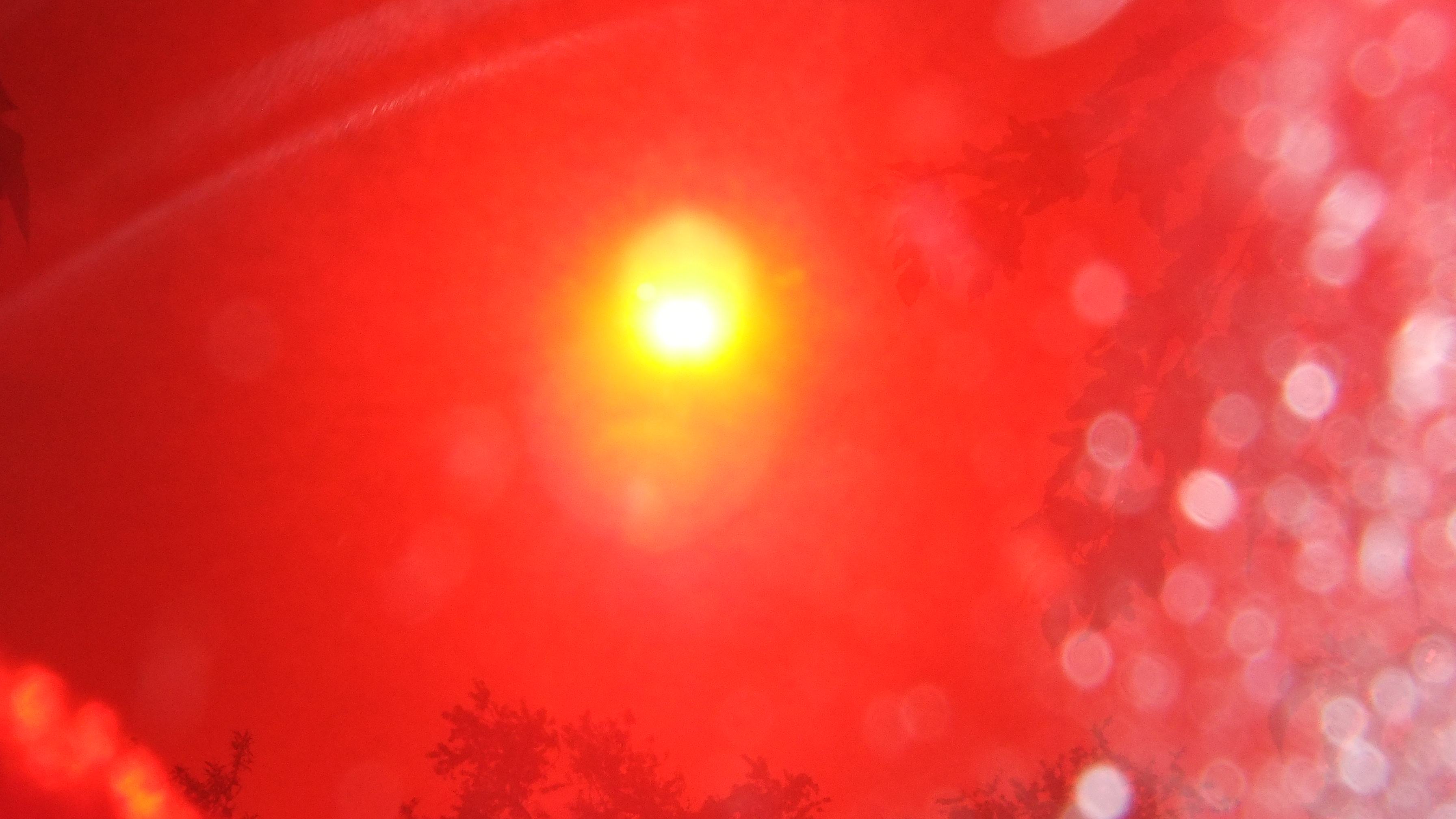 HERE IS ANOTHER PHOTO OF THE SUN SUBSEQUENTLY USING A DARK SUNGLASS LENS OVER THE RIGHT LENS OF THE CAMERA