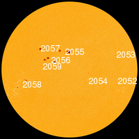 Sunspot AR2051 is approaching the sun's western limb, which is well-connected to Earth by the sun's spiralling magnetic field. If a strong flare occurs in the next few days, particles accelerated by the blast could follow those lines of magnetic force right back to our planet. NOAA forecasters estimate a 10% chance of X-flares on May 5-6.