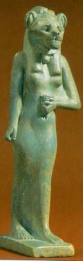 A mother of the Gods, Neith was most often seen as a fully human woman, sometimes holding a bow and arrows. However, she did have a lioness-headed aspect. Neith is unusual in that she has a androgynous aspect, in that she was supposed to have self-generated and to have both male and female elements in her nature.