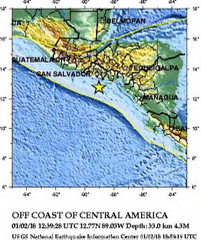 Earthquake Hits El Salvador Earthquake shake Salvador; third in a month of deadly quakes, SAN SALVADOR, El Salvador (AP) - An earthquake shook the capital of El Salvador on Tuesday, panicking residents still recovering from two devastating quakes in a month. Tuesday's quake hit at 11:37 a.m. and was felt in the capital, San Salvador (news - web sites). It's exact magnitude was not known, but it was not believed to be very powerful, said Waverly Person, a geophysicist and spokesman for the U.S. Geological Survey (news - web sites) in Golden, Colo. He said that the quake was probably about 4 magnitude. Two much more powerful earthquakes, on Jan. 13 and Feb. 13, killed at least 1,246 people and injured another 8,000.