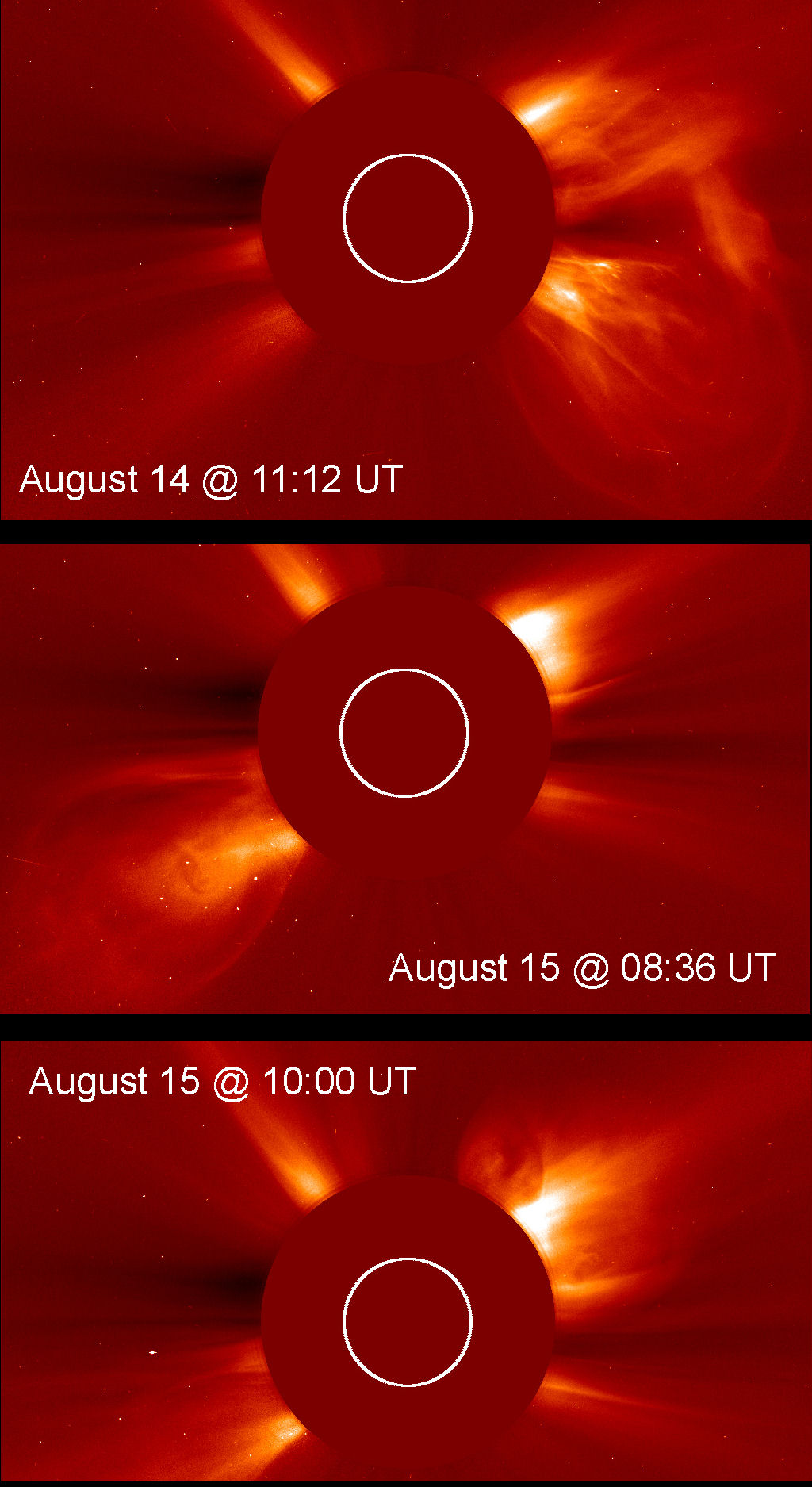 from Casey Base on the Antarctic coast. MORE AURORAS IN THE OFFING? Earth's magnetic field is still reverberating from the CME impact of August 3rd, which sparked auroras as far south as Wisconsin and Iowa in the United States. Analysts believe a second CME is right behind it, due to arrive on August 5th. A second impact could re-energize the fading geomagnetic storm and spark a new round of Northern Lights. High-latitude sky watchers should remain alert for auroras. At the height of the August 3rd display "the whole sky