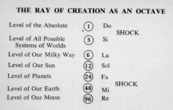 although the matter from which everything is made exists in differing degrees of density. The seven steps in the Ray of Creation may be thought of as the seven levels or orders of materiality, each differing in the rate of vibration: The absolute vibrates most rapidly and is least dense, and the levels below it become more dense and slower in rate of vibration until he moon, the slowest and densest place on our ray, is reached. Of these orders of matter the finer permeates the denser and coarser ones. Thus everything around us and familiar to us is in fact permeated with all the levels of matter that exist, including the Absolute.